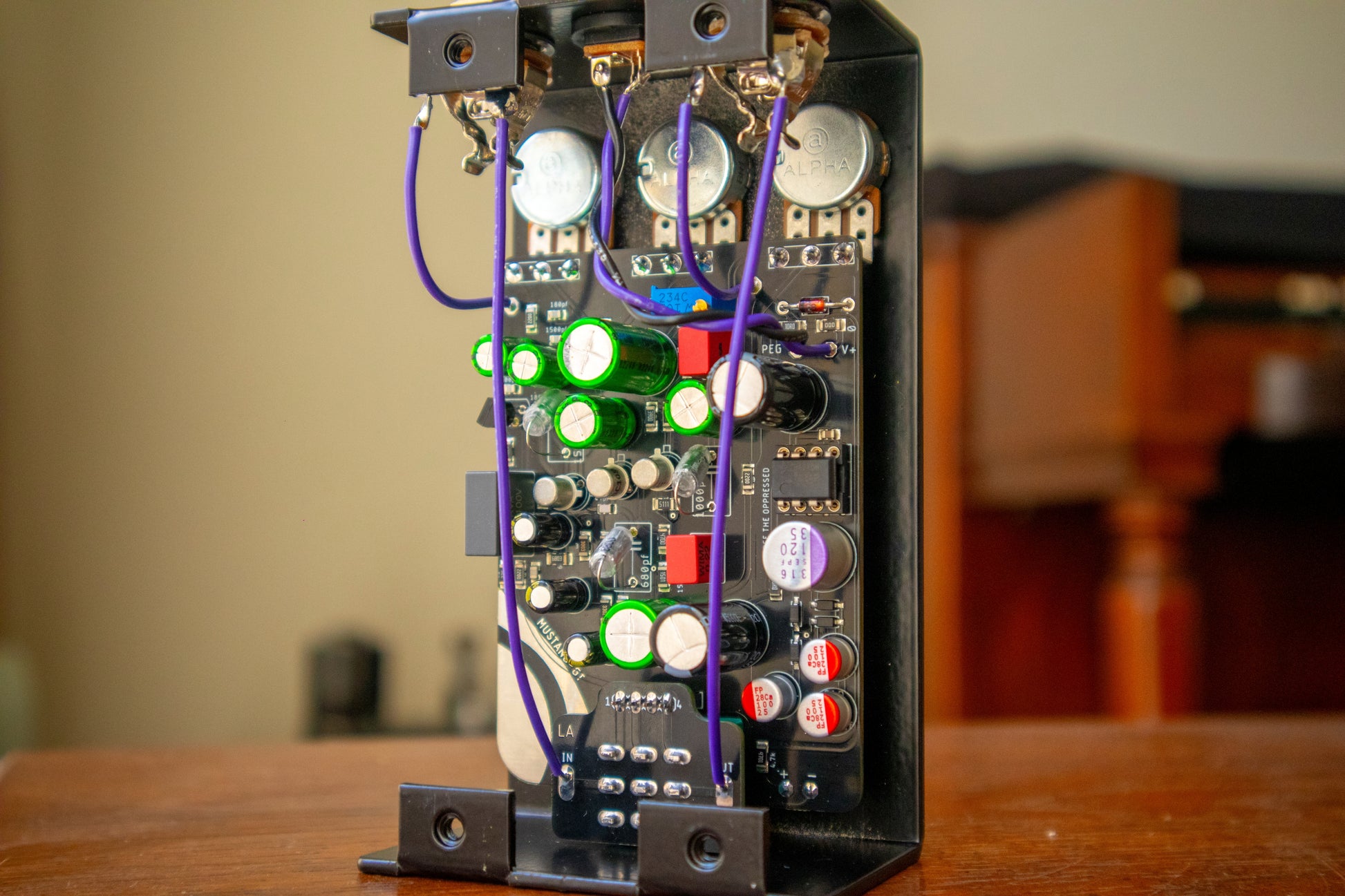 High quality coupling caps, polystyrene filtering/feedback caps, and low noise resistors provide studio quality tone. The internal voltage multiplier supplies the circuit with 24v like the classic rack unit, delivering incredible headroom and dynamic depth.